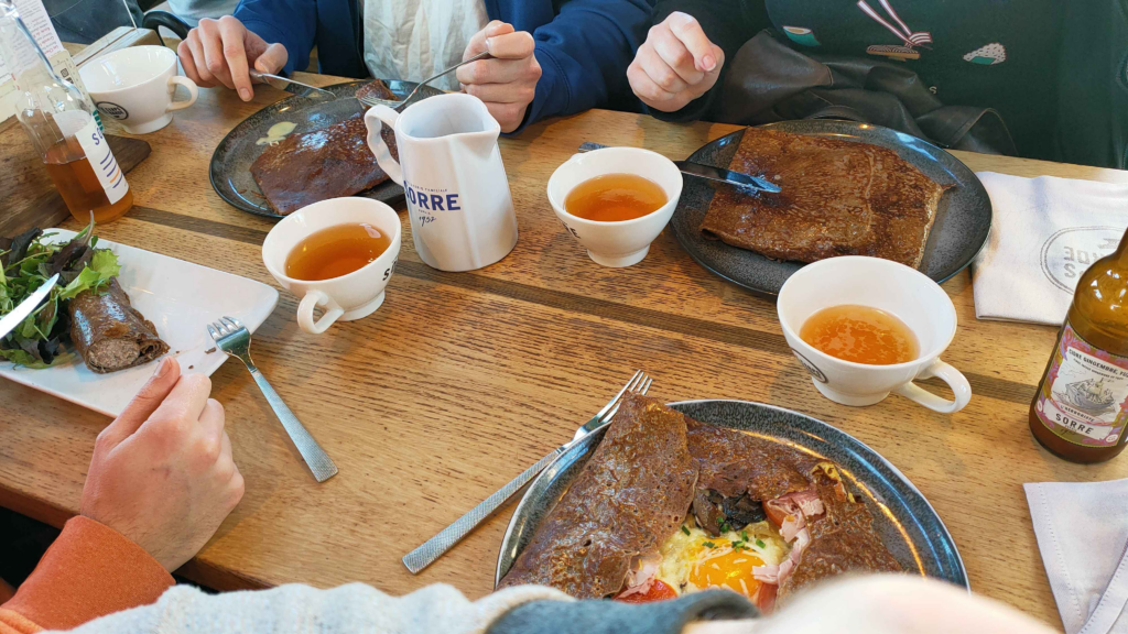 Seated in front of a sumptuous breakfast, we savor a breton specialty prepared by our hostess (thank you, Adrien’s mom!)