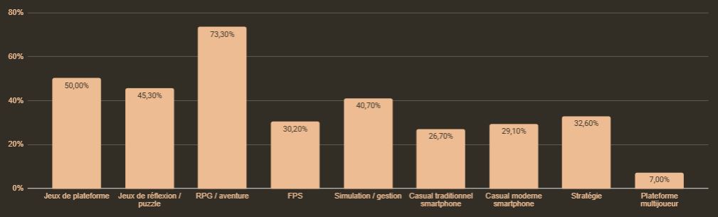 juste derrière les jeux de plateforme et les RPG d’aventure.